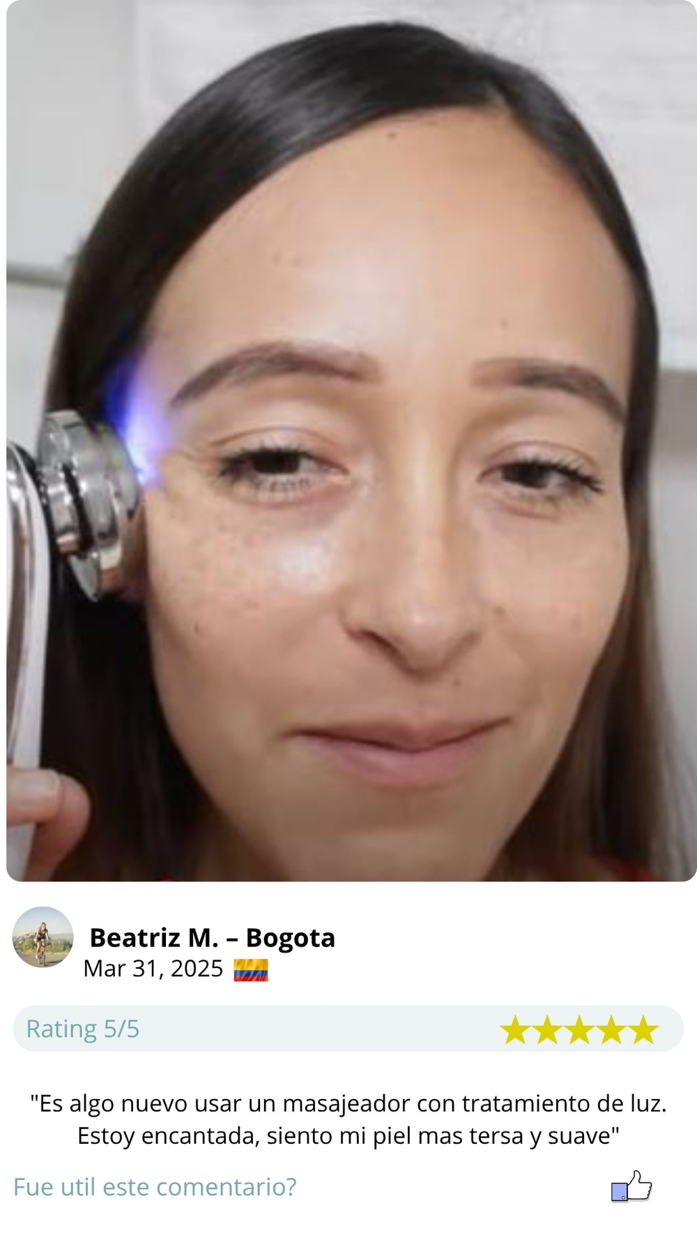 “Como dermatólogo, recomiendo este tipo de tecnología ultrasónica para pacientes que buscan mejorar la firmeza, oxigenación y absorción de nutrientes en la piel desde casa, sin procedimientos invasivos.” — Dra. Andrea Mejía, especialista en medicina estética